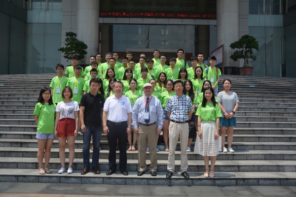 【本网讯】7月12日上午,我校第二届暑期国际教育周开幕式成功举行。我校副校长何建新、本次到访的21位外籍专家以及学校各单位和各学院的负责人、老师和同学参加了本次活动。