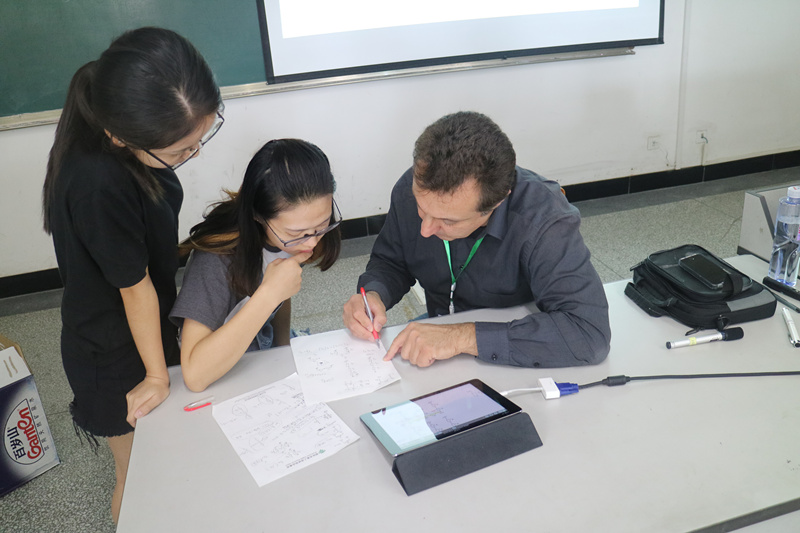 暑期国际教育周期间,Hamedi-Hagh教授为通信工程学院学生们详细对比讲解了新的简单快捷的分析电路的两种方式:suspendance analysis和trajectance analysis,学院安排专门的老师轮流从旁协助。通信工程学院国际教育周活动顺利结束。