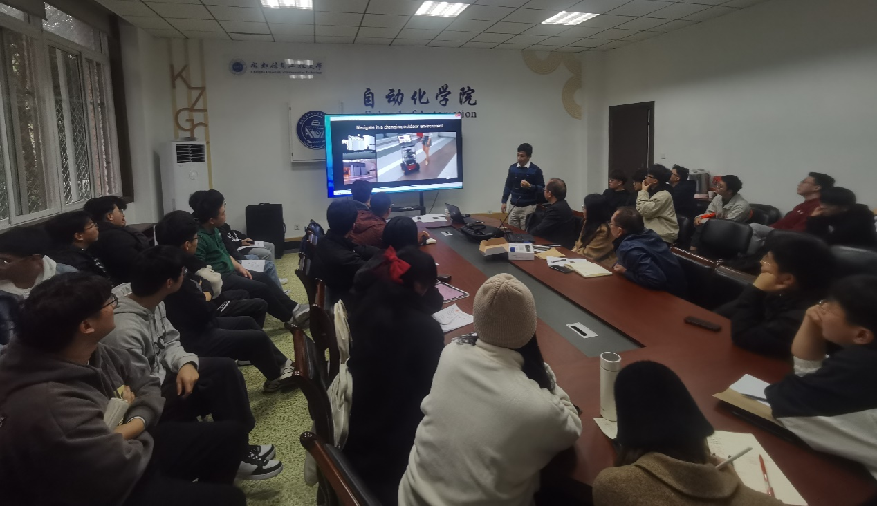 本次讲座围绕" How to estimate robot ego motion?"(如何估计机器人自我运动?)的主题,介绍了利用安装在机器人上的摄像头拍摄的序列图像来解决机器人运动状态的最新解决方案。王晗教授首先向师生讲解了利用点云的SVD解决方案的数学原理。基于此原理,他提出了从像点旋转的四元数解。最后,他用多个视频向观众展示了该技术的多个成功应用案例。讲座现场互动气氛轻松而热烈。