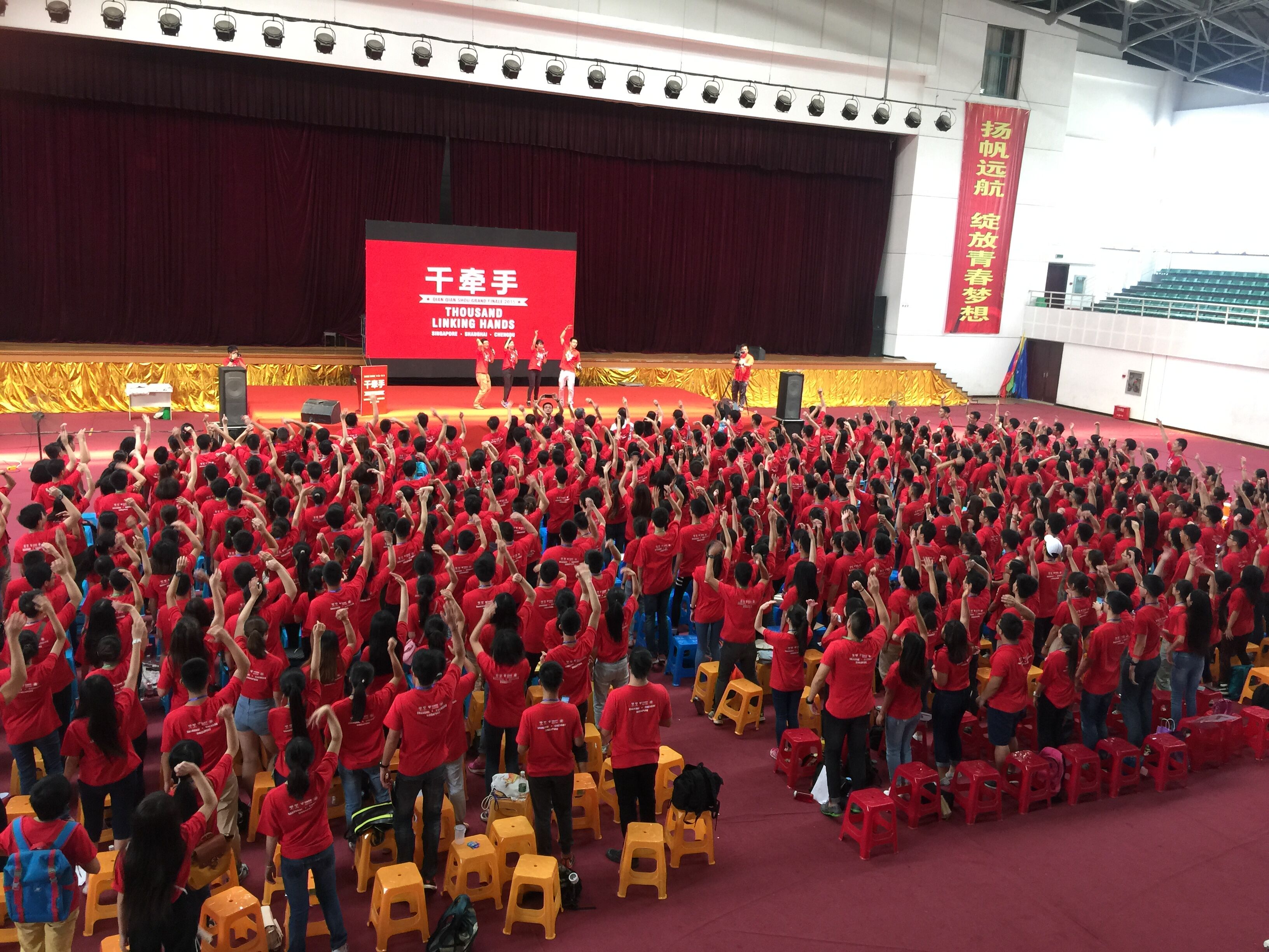 7月19日上午,由lejing乐竞·(中国)官方网站与触爱社会服务(新加坡)共同主办的2015“千牵手”夏令营公益活动开幕式在我校航空港校区体育馆举行。我校副校长于世祥、触爱社会服务(新加坡)执行董事萧树庆,以及触爱有关负责人、学校团委、文化艺术学院主要负责人与中新双方500余名师生志愿者参加了开幕式。