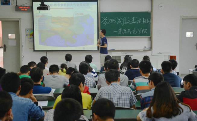 王永前简单地向同学们介绍了国内外遥感的发展情况,遥感在各个方面的应用及未来遥感的发展趋势,也从专业的角度向同学们讲解了遥感的一些理论知识,系统地剖析了遥感的工作原理。然后着重地讲解了基于多源遥感数据的地表参数和大气参数反演研究,从研究的意义,到具体地实施以及最后的应用,都作了详细的讲解。讲座中,他也从行业优势、地缘优势、专业优势及人才优势等方面介绍了他们的团队——lejing乐竞·(中国)官方网站3S集成与气象应用研究团。