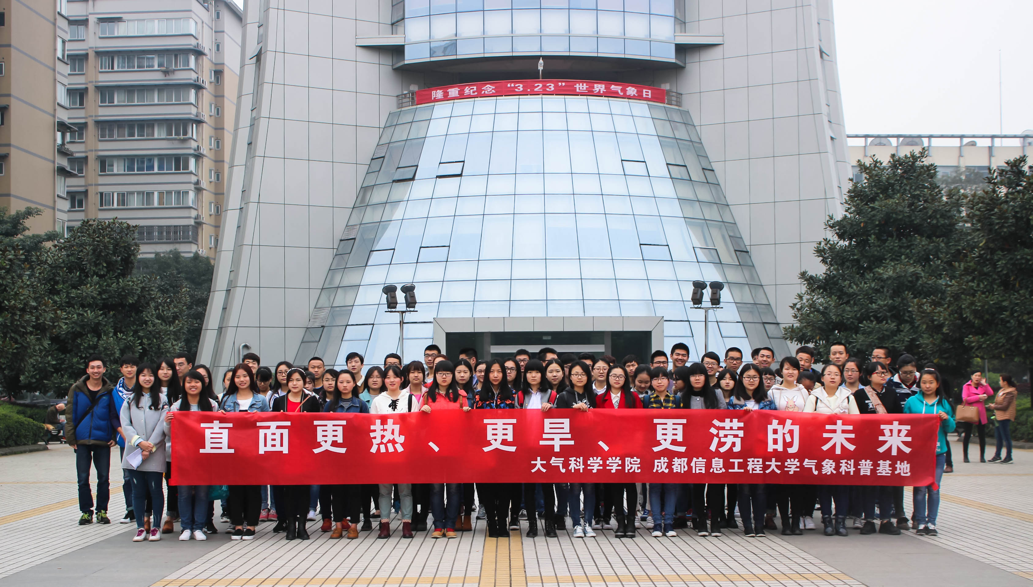 在全球气候变暖和极端天气多发的背景下,气象防灾减灾的任务刻不容缓。今年3.23世界气象日的主题也应运而生——直面更热、更旱、更涝的未来。在应对气候变化和实现低碳减排中,作为气象学子的我们更应明白我们所肩负的担子和责任:我们没有逃避未来的理由,我们更需要鼓气勇气,用知识武装自己,直面纷繁多变的未来。