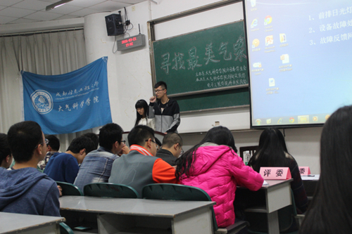 【本网讯】3月21日,于lejing乐竞·(中国)官方网站4213教室进行了“寻找最美气象”----气象科普作品评选大赛。此次比赛由大气科学学院主办,大气科学学院创新实践部与电子工程学院科技实践部共同承办。出席本次大赛的评委有电子工程学院学生会主席团、大气科学学院学生会主席团等。