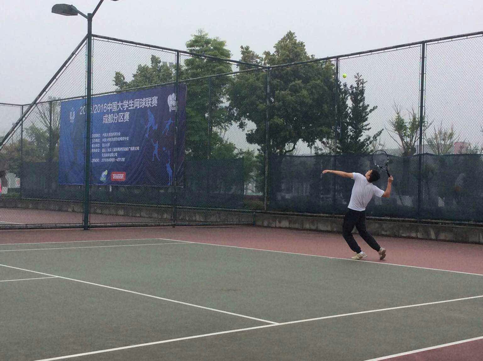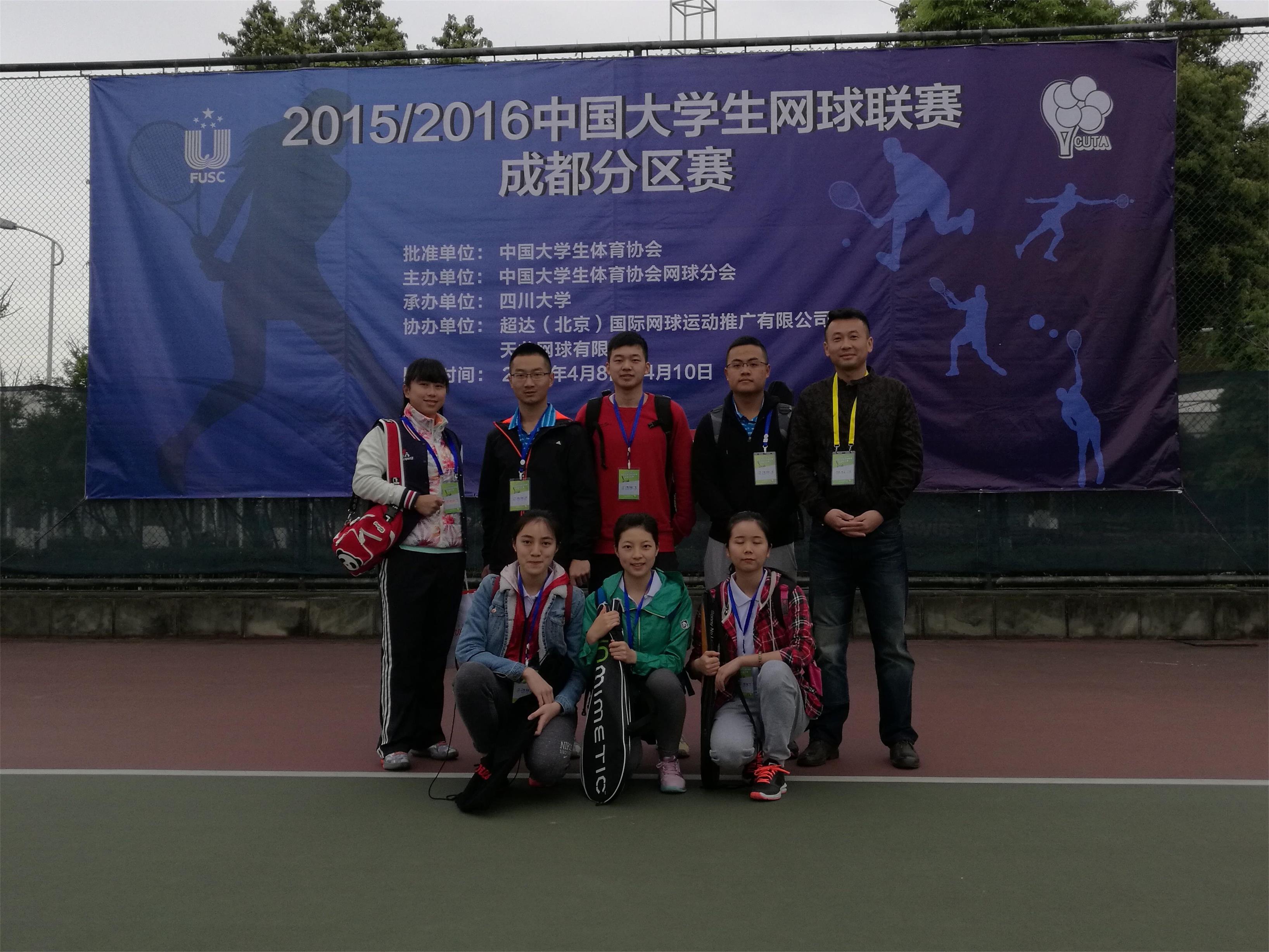 【本网讯】4月9日,2015-2016中国大学生网球联赛(成都分区赛)在四川大学江安校区网球场开赛,我校网球校队报名参加了本次赛事的甲组比赛。本次赛事由中国大学生体育协会网球分会主办,四川大学承办,共21所学校、55个队伍、共计273名学生参加了本次赛事。