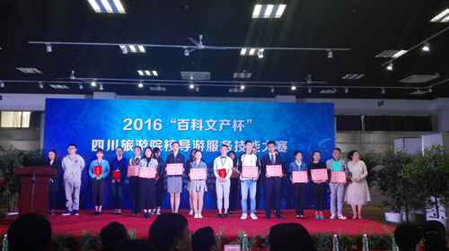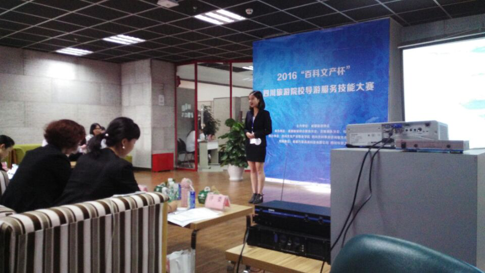 【本网讯】4月23日,2016“百科文产杯”四川旅游学院校导游服务技能大赛在四川文化产业职业学院举行,此次比赛由成都旅游协会主办,来自全省20所旅游院校的60名选手参加角逐。我校管理学院旅游管理专业学生钟玮珂、闫超、顾婷和蔡志红参加了此次比赛。