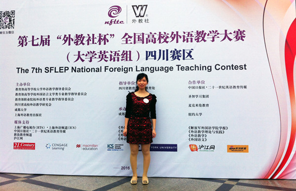 比赛分为综合组和视听说组两个组别,在复赛环节每位选手须进行一堂不超过20分钟的授课。决赛环节的比赛包括10分钟的说课和评委提问环节。代表我校参赛的饶国慧老师充分展现了自己扎实的语言功底和教学技能,最终获得视听说组三等奖。经过激烈角逐,来自西南民族大学和成都大学的选手分获综合组、视听说组特等奖,并将代表四川省高校外语教师参加第七届“外教社杯”全国高校外语教学大赛总决赛。