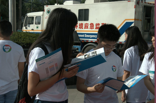 志愿者们在到达现场后,先参观了环保设备技术科普展。在近距离接触检测以及减少汽车尾气、监测大气核污染等一系列在环保方面的各种先进技术以及成效后,志愿者们切身体会到保护环境刻不容缓的必要性和绿色发展造福人类的重要性。随后在展馆区,资环志愿者在聆听当地志愿者介绍“十二五”中四川省各种环保成果后,感受到了四川乃至整个中国在环保事业的重视程度以及杰出成果创造的价值。