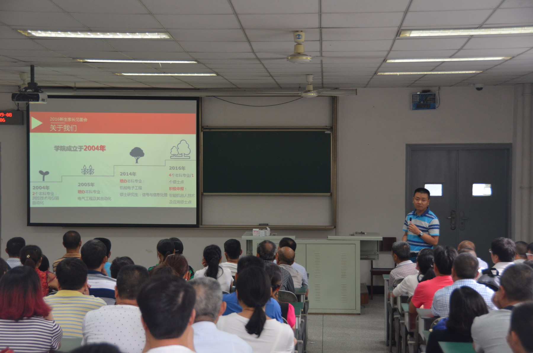 蒋院在家长会上致辞并代表学院向各位家长道贺。接着蒋院长重点就我院的成长历史、师资队伍、专业简介、科技成果、创新教育实验室、学生获得的奖项等方面逐一向新生家长进行介绍。蒋院长指出,学校丰富的教学资源、完整的培养体系、开放的教学观念、全方面的人文关怀为孩子的成长提供了充足的条件,他希望学生能够在大学四年之中多多接触不同的学习环境,选择适合自己的。
