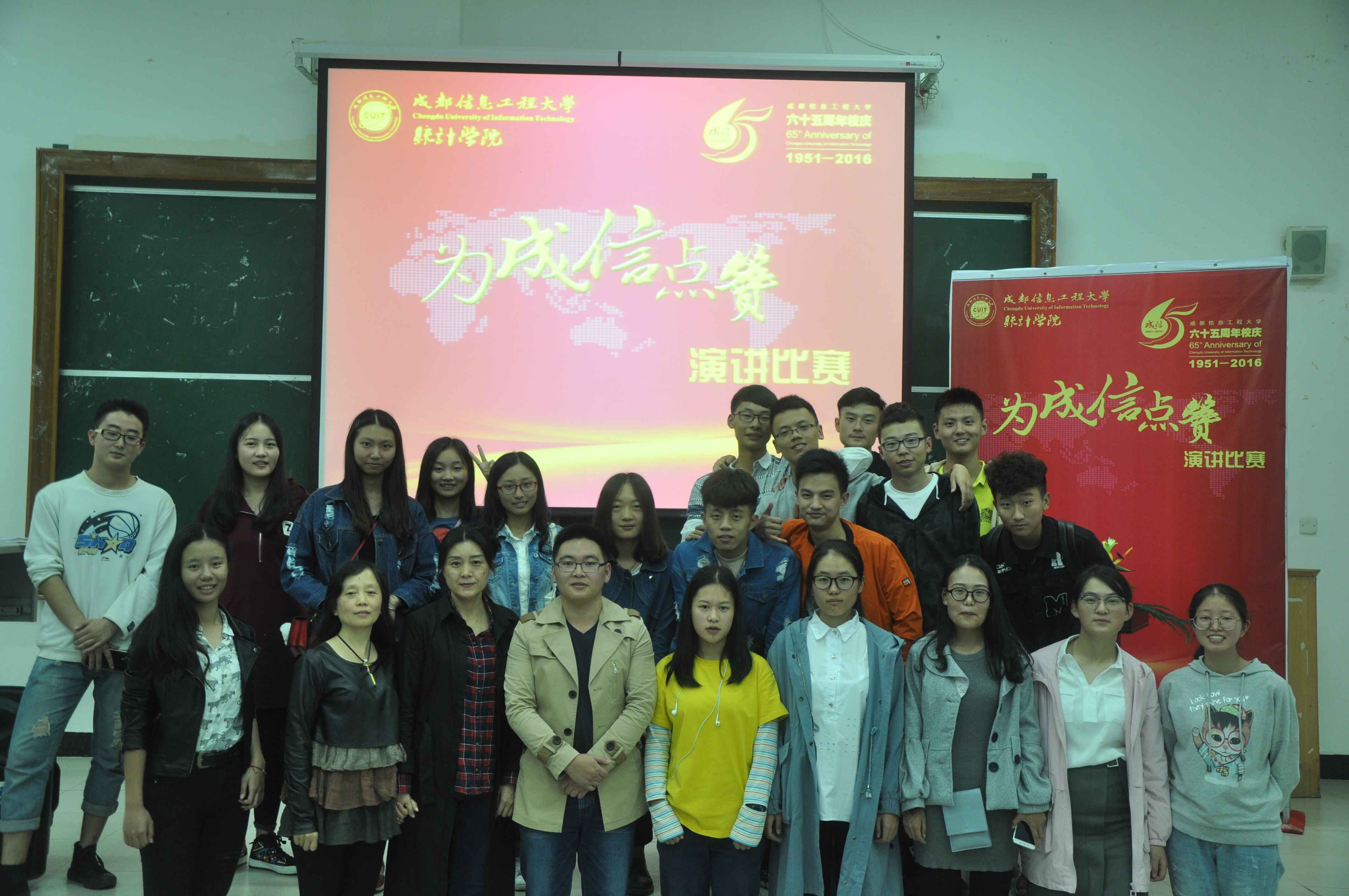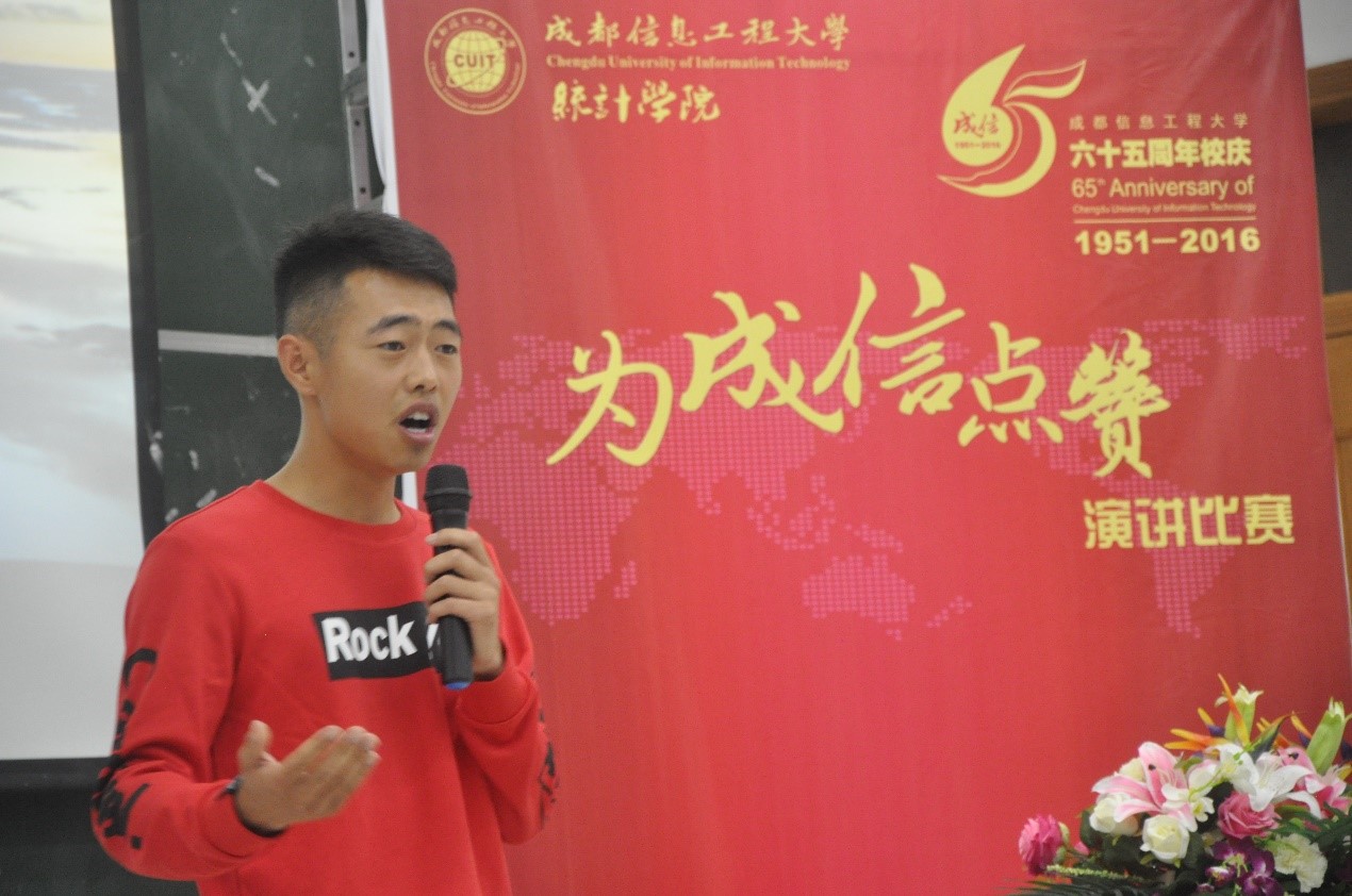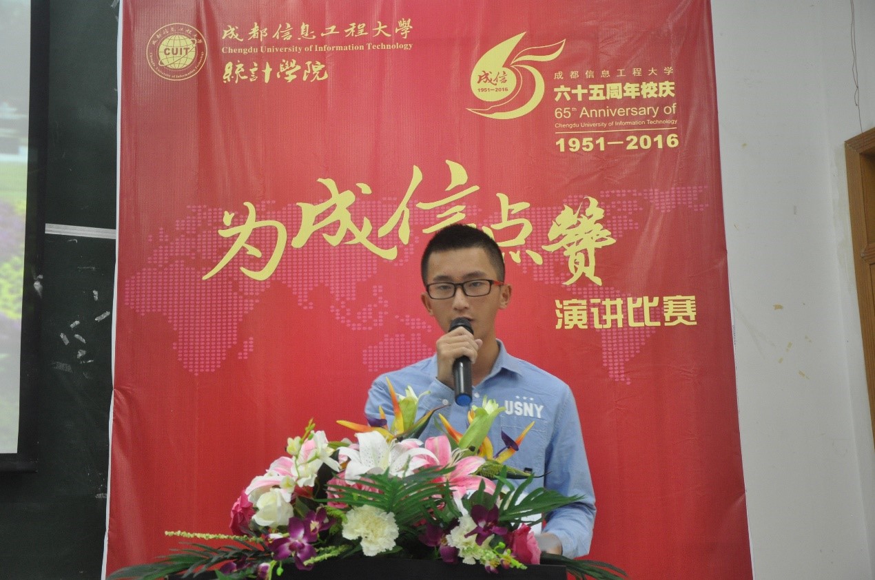 【本网讯】六十五载,风云变化,lejing乐竞·(中国)官方网站迎来了65周年庆。10月9日晚,统计学院在龙泉校区4101教室举办了庆祝学校成立65周年“为成信点赞”演讲比赛。本次比赛共有通过各班及学生会各部门推荐的14名选手参加。统计学院邹永红副教授,邹红梅老师,学院团委书记彭波老师担任本次比赛评委。来自2016级的120名大一新生及学院全体学生组织成员观看了此次演讲比赛。