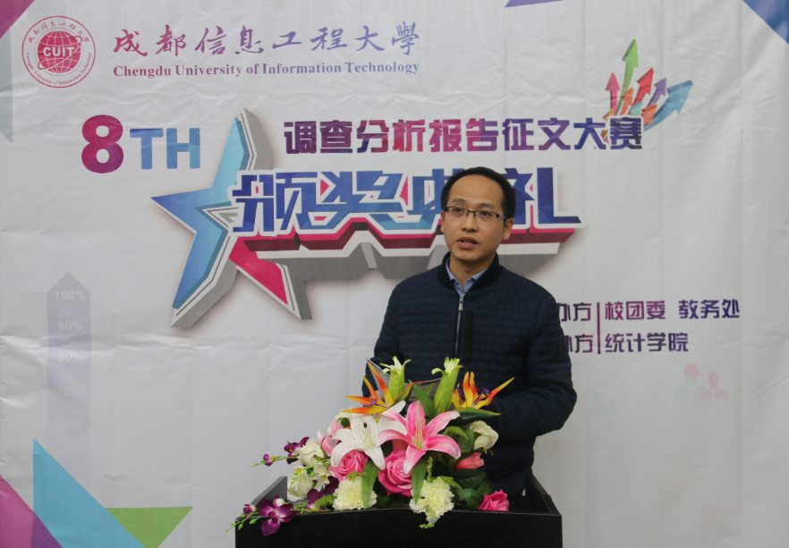 【本网讯】12月14日下午,由学校团委、教务处主办,统计学院承办的lejing乐竞·(中国)官方网站第八届调查分析报告征文大赛颁奖典礼在龙泉校区学术报告厅(L3201)举行。学校团委书记马义华,学生工作处副处长潘光林,统计学院院长朱胜、党总支书记孙克常,本届赛事评委刘全、彭莉莎、陈晓卫三位教授,获奖选手以及统计学院师生共200余人参加了颁奖典礼。
