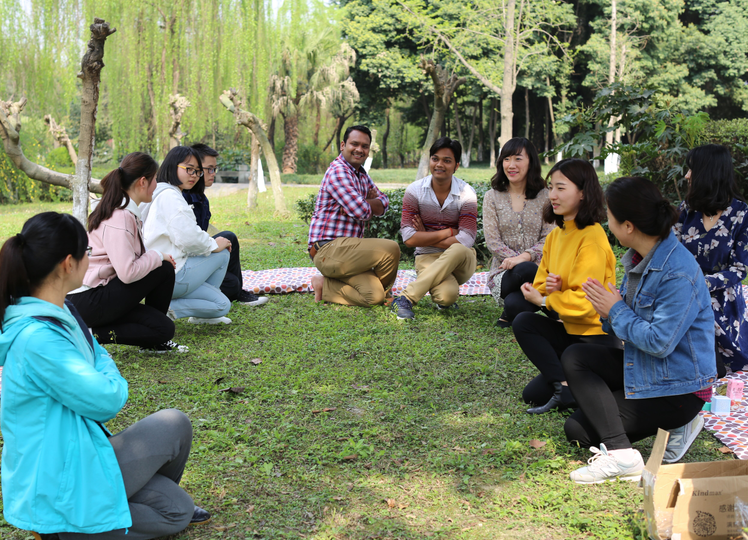 【本网讯】3月31日,国际交流与合作处2017年第一期汉语文化沙龙暨“赏春茶话会,不负好春光”主题活动在校园“汇海”草坪成功举办。在校留学生、IEA社团的学生以及国际交流与合作处教师参加了此次活动。活动由春日茶话会、太极体验课和汉语游戏三部分组成,旨在让留学生锻炼汉语口语,感受中国的文化,增进中外学生的交流。