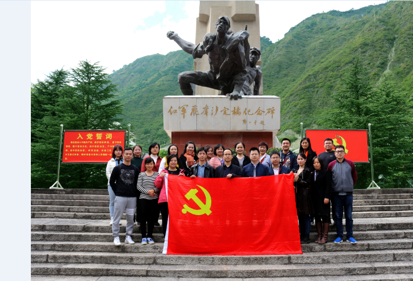在泸定红军纪念馆的参观学习中,全体党员先后参观了“红军飞夺泸定桥纪念馆”“红军长征在甘孜州纪念馆”“泸定二郎山川藏公路纪念馆”三大馆舍。红军飞夺泸定桥纪念馆以红军飞夺泸定桥史事作为重点,综合利用了声、光、电等现代技术对相关文物进行了展示,突出了红军战士在飞夺泸定桥时的不为艰难困苦的精神和对中国革命所产生的重大意义;红军长征在甘孜纪念馆中,通过大量史料的展示,真实地还原出红军在甘孜,与当地少数民族广泛团结,并得到了群众的拥戴,充分体现出军民鱼水情和伟大的长征精神;泸定县二郎山川藏公路纪念馆则以当年建设川藏公路时的地理条件、社会文化和相关实物等作为展览内容,极大地还原出当年修建川藏公路时的困苦,从中也体现出军民一家亲的民族团结的和谐画面。为追忆史诗般的红军长征,支部成员一行重走了泸定桥,对红军战士的敬佩之情油然而生,被革命先烈的大无畏精神所深深震撼。
