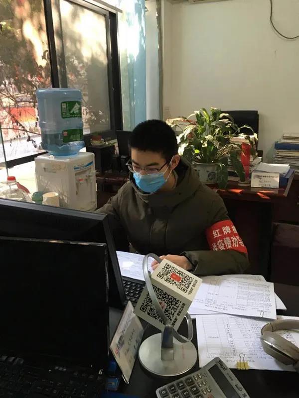 靳少博的主要工作是对每一个出入的人员与车辆进行检查,测量体温,并查看通行证。工作虽然重复单一,为了保障居民们正常的生活状态,他一件都不能落下,一刻都不能松懈。此外,他还与几位年轻的党员挨家挨户发放宣传册,宣传勤洗手,少出门,戴口罩,勤通风;尽量减少外出、聚会,不信谣,不传谣。