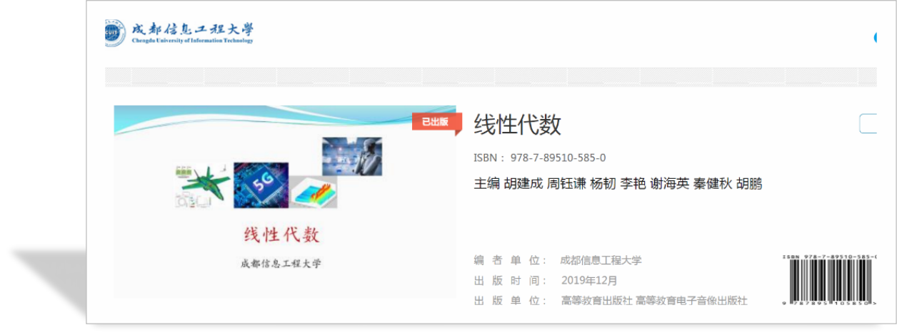 出版新形态教材2本,分别为《线性代数》和《概率论与数理统计》。相关教材封面见图12。