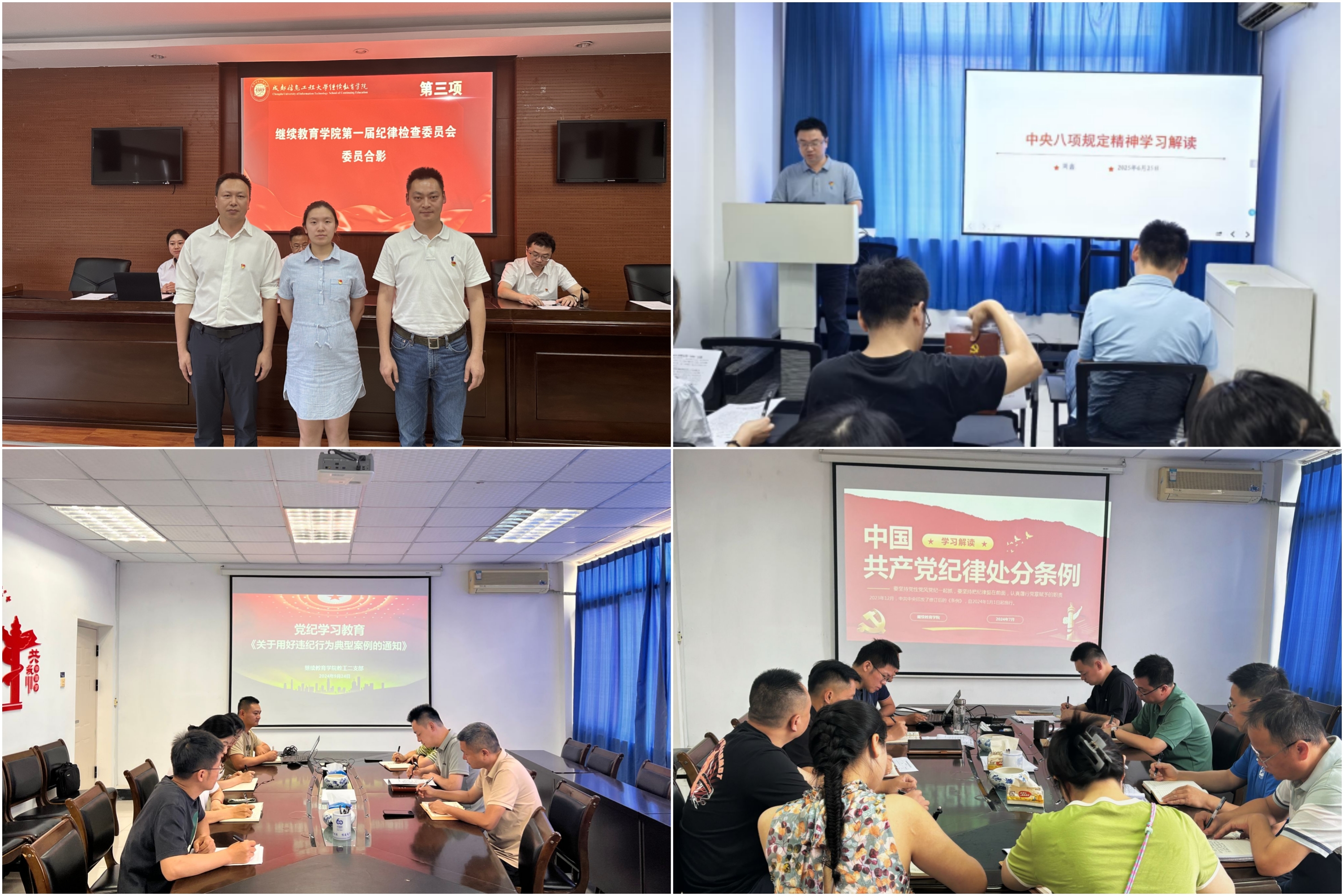 在纪律建设方面。2024年度继续教育学院立足全面从严治党要求,着眼强化党内监督、筑牢纪律防线,正式成立第一届继续教育学院纪律检查委员会,通过常态化开展纪律教育、廉政风险排查,引导全体教职工党员强化纪律意识、筑牢思想防线,从源头上防范廉政风险;同时确保学院各项工作在合规有序的轨道上推进,为学院事业高质量发展营造了风清气正的政治生态与干事环境。